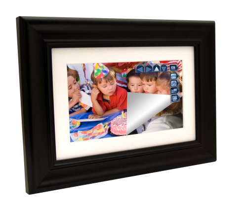 Pandigital 7.0" LCD Digital Photo Frame, Utilizes PanTouch Technology, 256MB Internal Memory Holds Up To 2000 Compressed Images, WiFi/Bluetooth Compatible, Black Wood Frame, 800 x 480 Screen Resolution, 6-in-1 Memory Card Reader, JPEG, AVI, Music Playback, Alarm, Clock, Calendar, Programmable On/Off