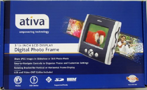 # Digital picture frame features 3.5"-diagonal LCD screen. # View JPEG photos in convenient, portable format. Great for the home or office. # Standalone display requires no computer or Internet connection to operate. # Multiformat card reader/writer is compatible with CompactFlash, Secure Digital and MultiMediaCard and can connect to a computer via USB cable. # View images on your TV via connection with included RCA cable. Product Details Frame Size : 3.5" Resolution : 320x240 Screen Type : Flat panel LCD